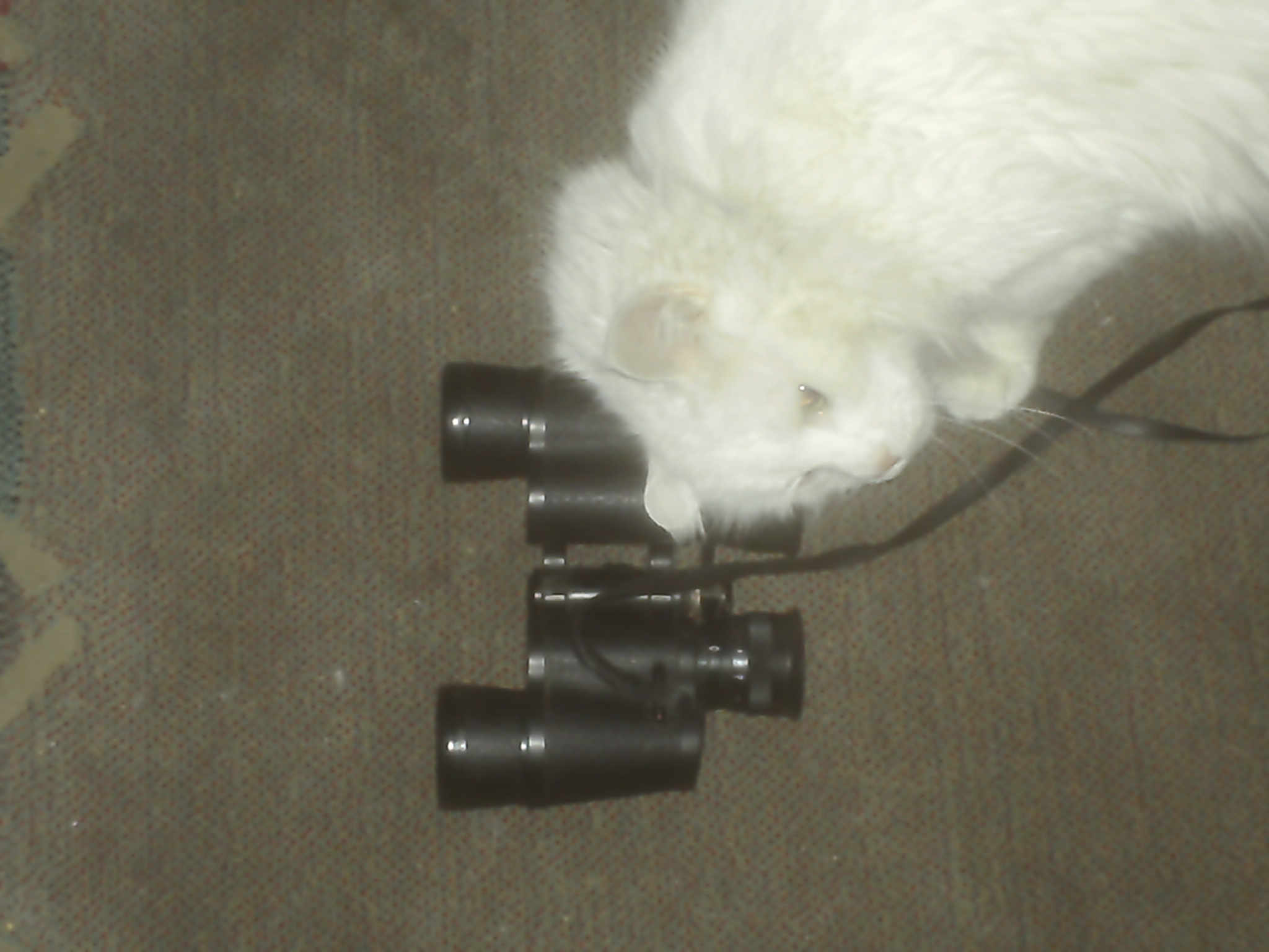 I have seen the Found Cats become attached to some very odd things Richard , but never bionoculars!!