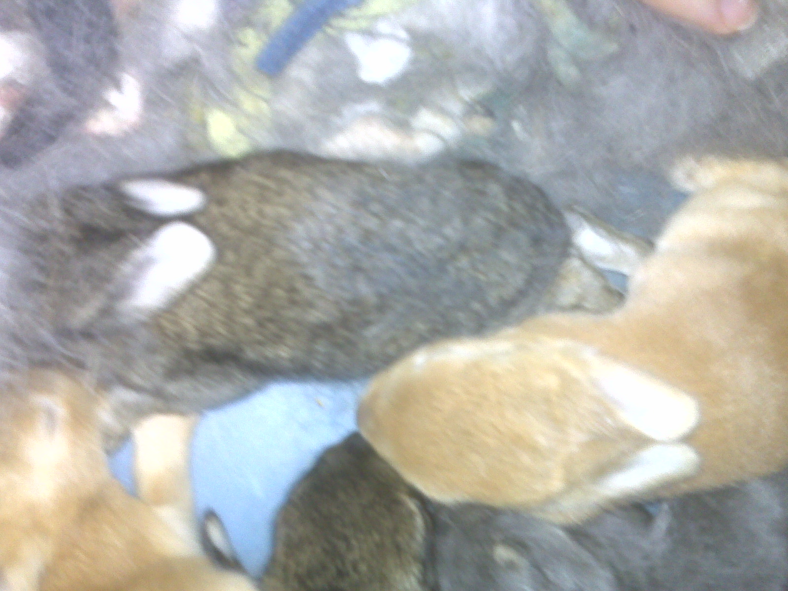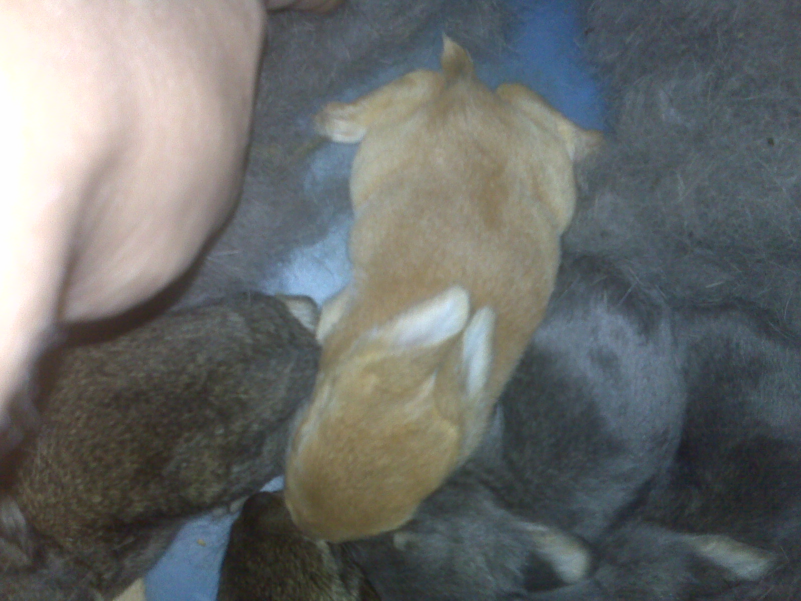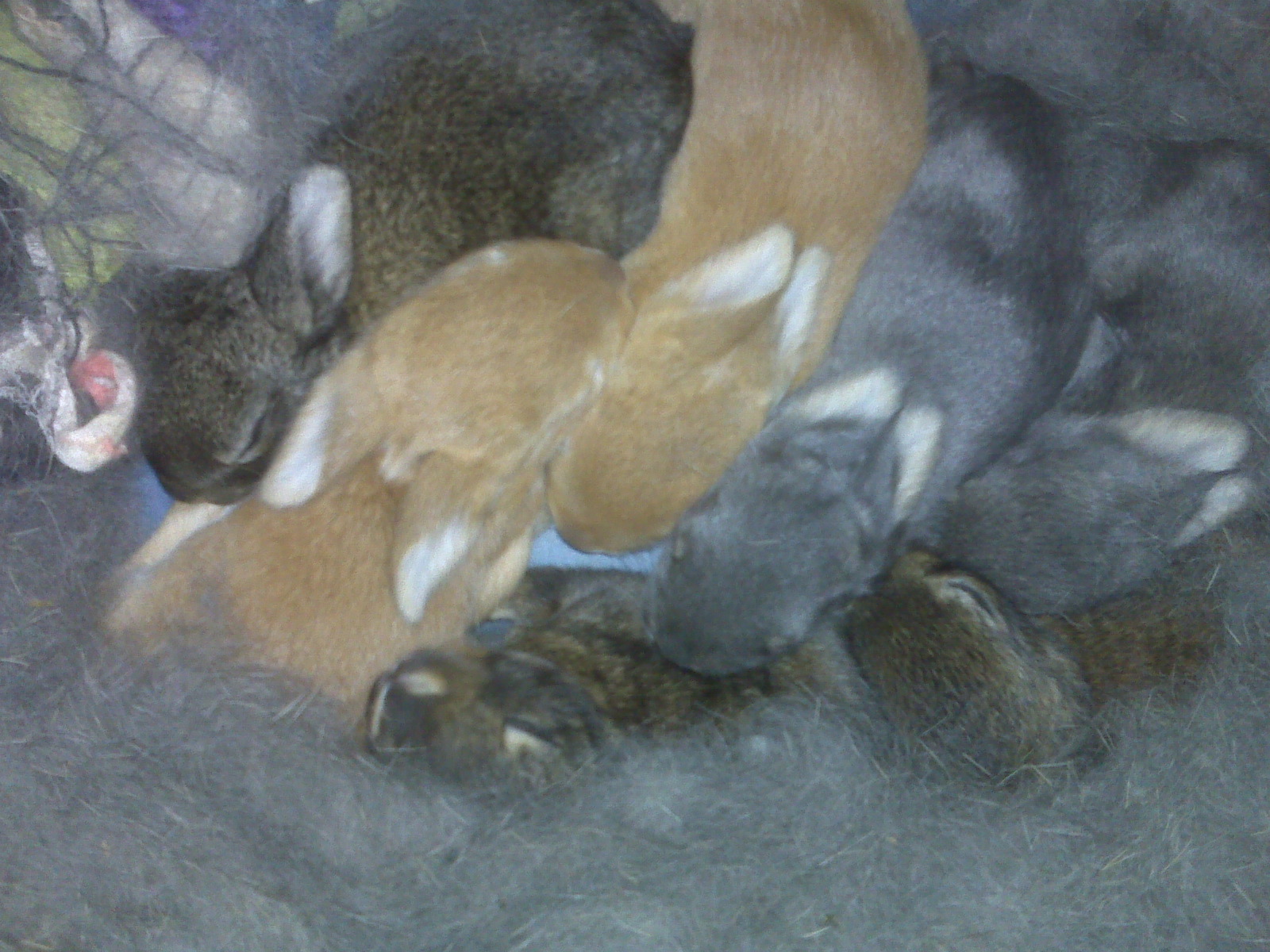 as Iīm awaiting for my bigger cage to arrive the two baby bunnies I had in july, well not I, my bunnies..lol.. are still here.. and since I didnīt want a zillion of em I placed both of them in a cage.. but.. mom and dad remained "free".. until new cage arrives... so... long story short.. momma was fat but no sign of babies which I expected like a month or so ago...then yesterday wow.. mom was not fat