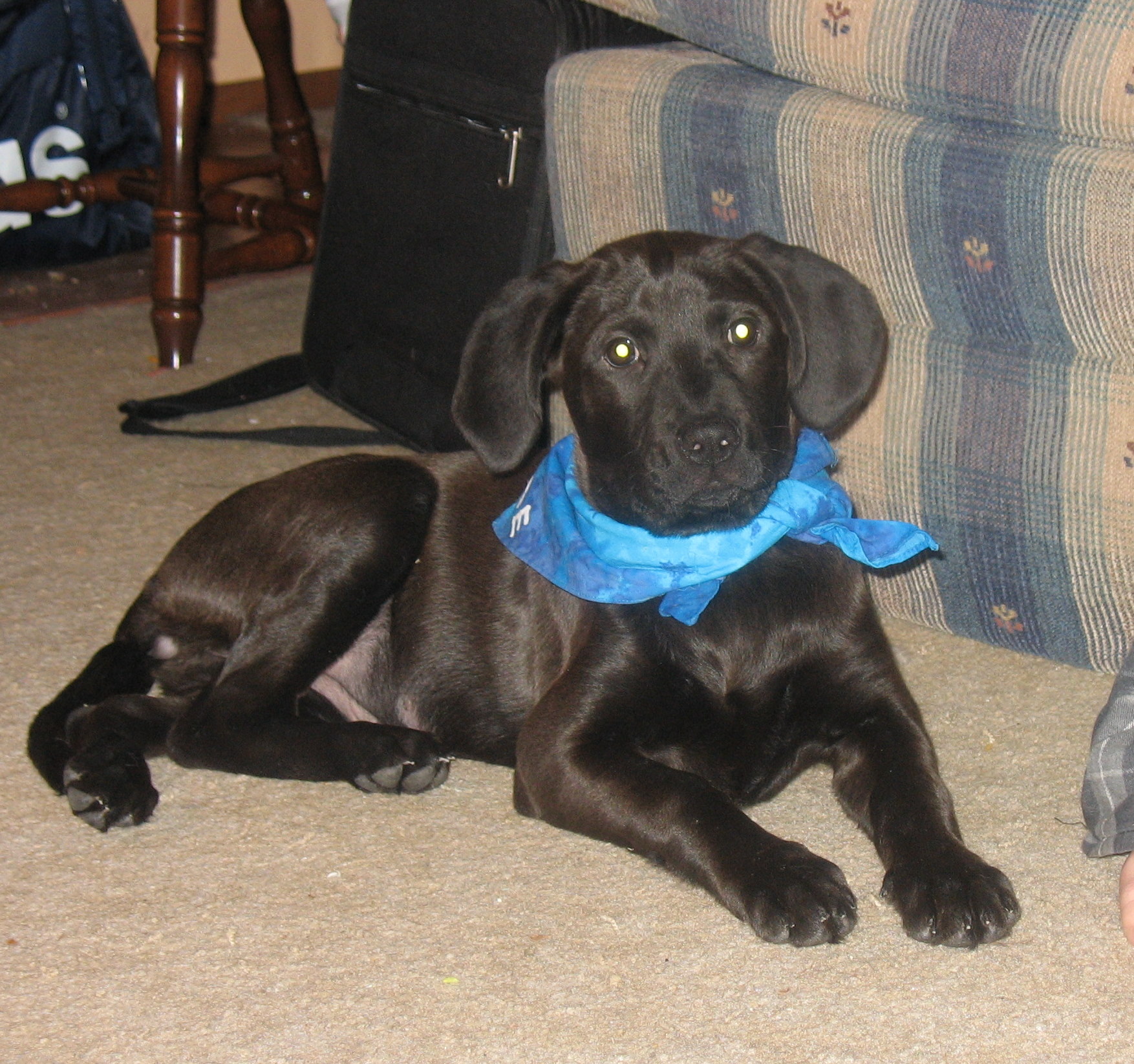 Rach was going to a party with her friends from high school that live over here so I said she could leave Zoe here. After Rach left I called Zoe and she didn't come so I went looking for her. She was sitting by the back door with her head cocked watching the door. She whined a little but then I got her to play with a ball and some other toys and she has been fine since Rach left. Now she is sleeping on the couch.