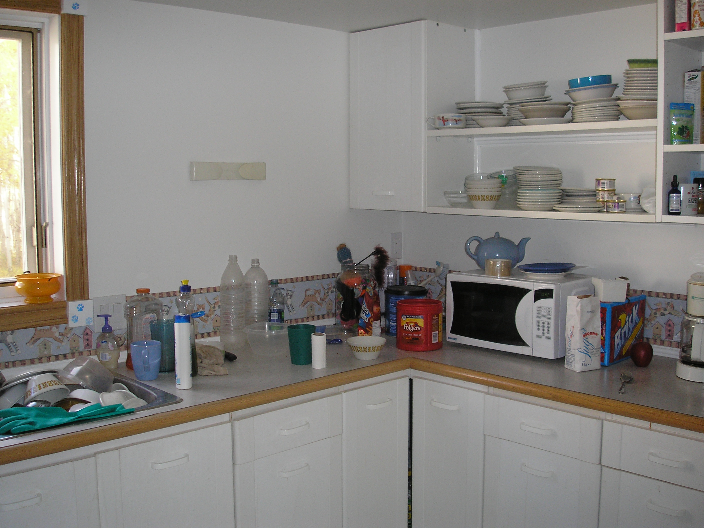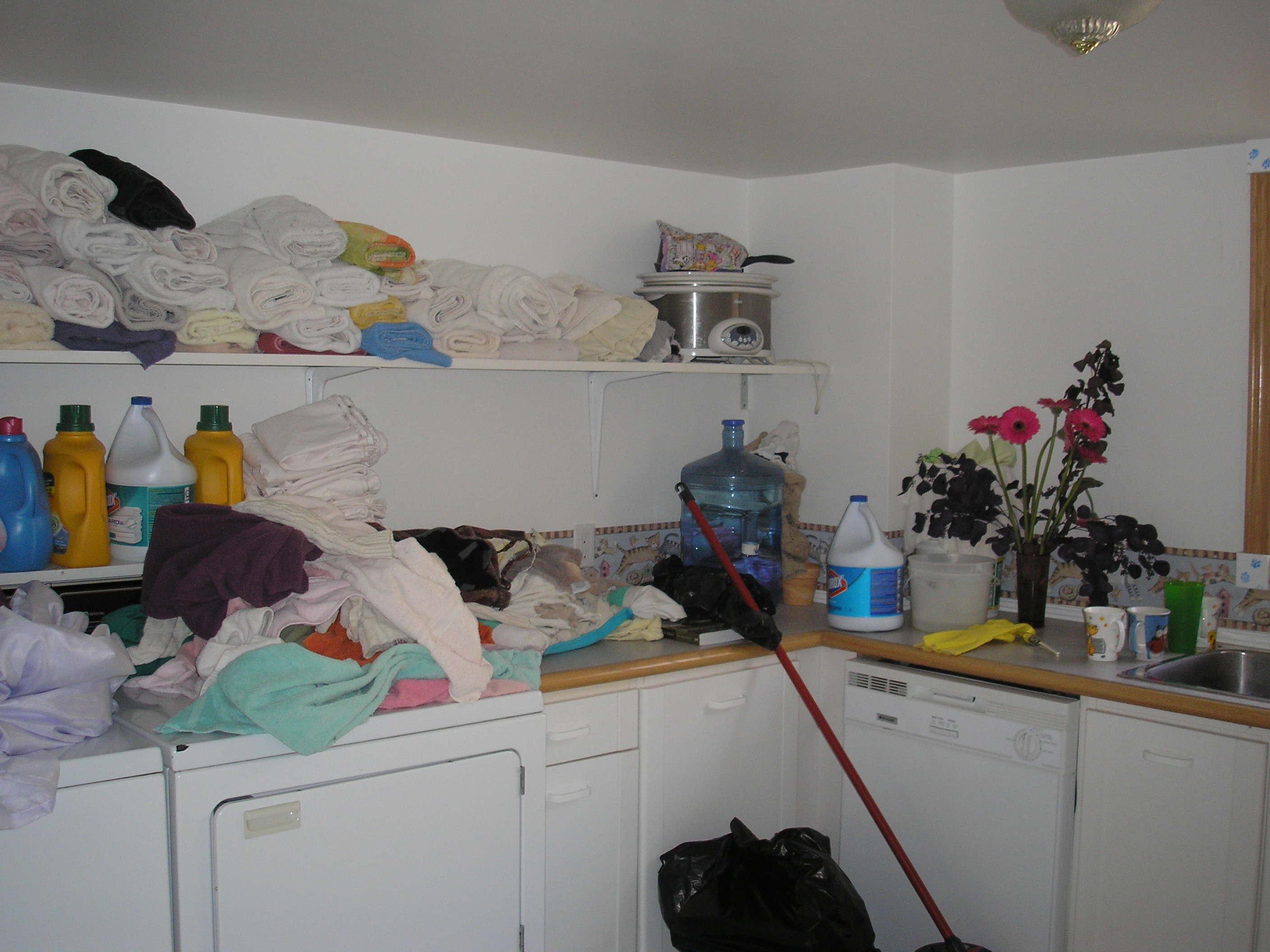 The place is starting to stink. Dishes are hand-done in bleach and soapy water, rinsed and drained on a huge (clean) towel. The three large plants in the sunroom are dying - I was in one morning and managed to get some water into them. She "doesn't like plants".