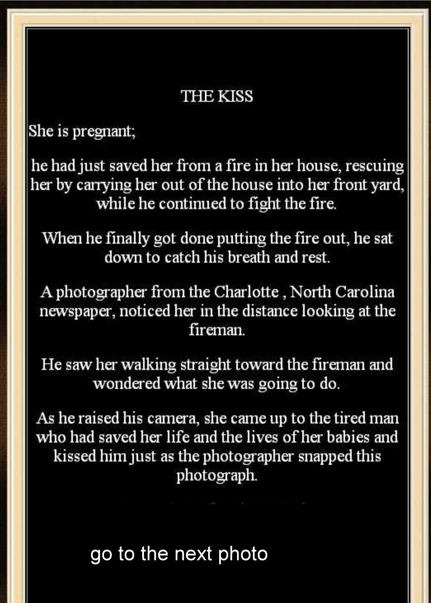 This is supposedly a true event. It's beautiful. I had to put the story and photo in 2 photos. I hope it shows it properly... very inspiring and touching. Kay in NC
