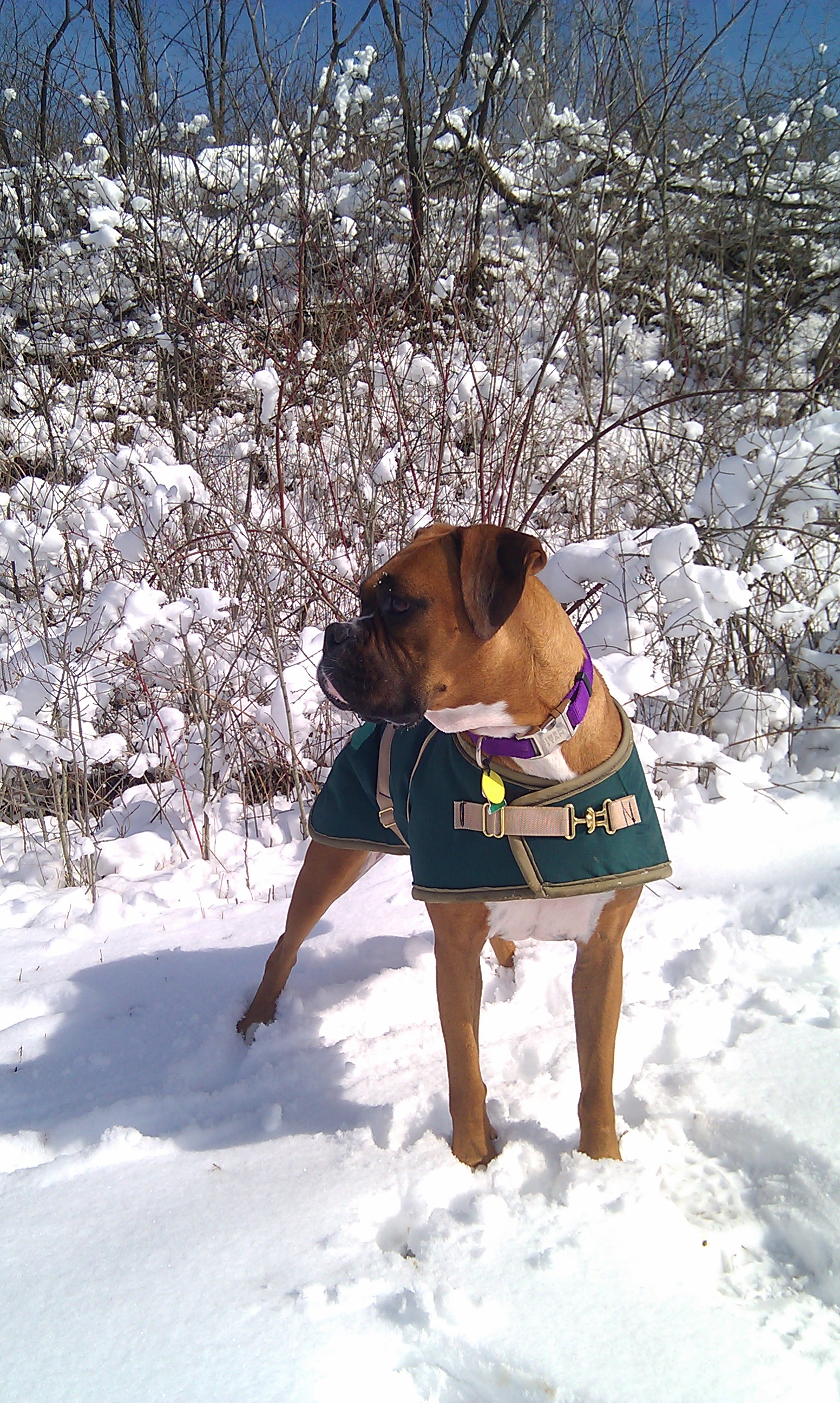 I found out this winter that Franny *loves* snow - it was our first winter together, so at first I was nervous to see how she would be. I found out that she absolutely LOVES snow balls and goes nuts chasing and eating them. She smashes her face in the snow until it is completely covered, she looks absolutely ridiculous when she does this. Like all boxers, Franny cannot tolerate the extreme cold, which Wisconsin is well known for, so that's why I made sure to buy her a good quality, warm coat. She wasn't too thrilled with it at first, until she realized it keeps her toasty warm and now she doesn't mind it at all.