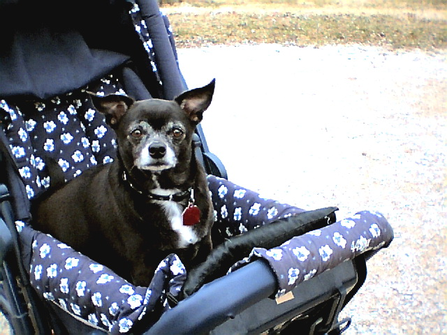 My samson has had 2 surgery to repair his knee caps. The vet had to cut his femurs as his caps were permanently turned around backwards. The vet had to line everything up correctly and pin it all back together. Here is a pic of Samson in his stroller going to the park during his recovery.