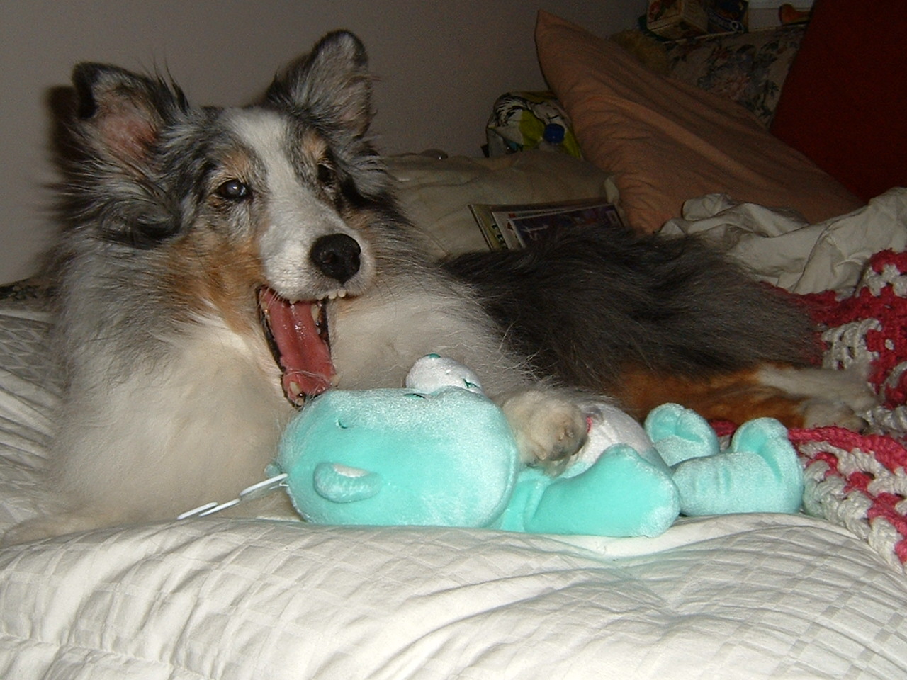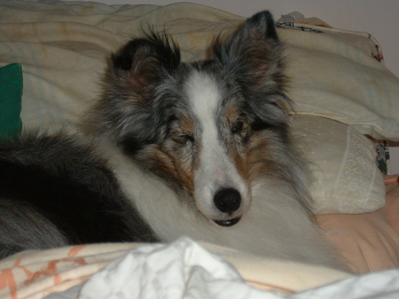 On July 31, 2005 my beautiful blue mural Sheltie had to be put to sleep after her 8 month long battle with mammary/ lymphoma cancer. I was privileged to have her in my life. By fluke I caught an add on a sheltie breeder forum stating that a lady in Tallahassee Florida was offering breeding services of 2 of her females on a lease of one year. This is when my lovely CC and her cousin Rosy came to visit me. Needless to say my Sweet CC did not return home as we shared a sacred bond know one ever dared to invade. I was fortunate to have her about 8 wonderful years out of her 13 years of life. Its been very difficult living my life without her. We have since stopped breeding these days and although my family has 5 other dogs, my life is not empty with the desperate longing for my best friend. This is the feeling that only a surviving human companion can express after a loving pet has perished. Those who do not have the special forever in love connection with ones pets just don't seem to understand the great feeling of grief I feel. Only 2 months gone and it already seems like an eternity.